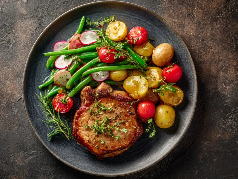 Grydestegt svinekotelet med bønnesalat og ovnbagte kartofler
