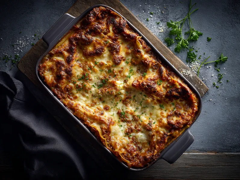 Sæt lasagnen i den forvarmede ovn og bag i 20 minutter, indtil osten er gylden og let boblende.