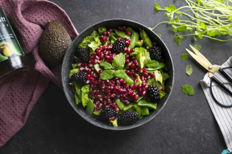 - Hvis du ønsker lidt ekstra crunch i salaten, kan du tilsætte nogle ristede pekannødder eller valnødder. Det giver en dejlig kontrast til den bløde avocado og de saftige brombær.