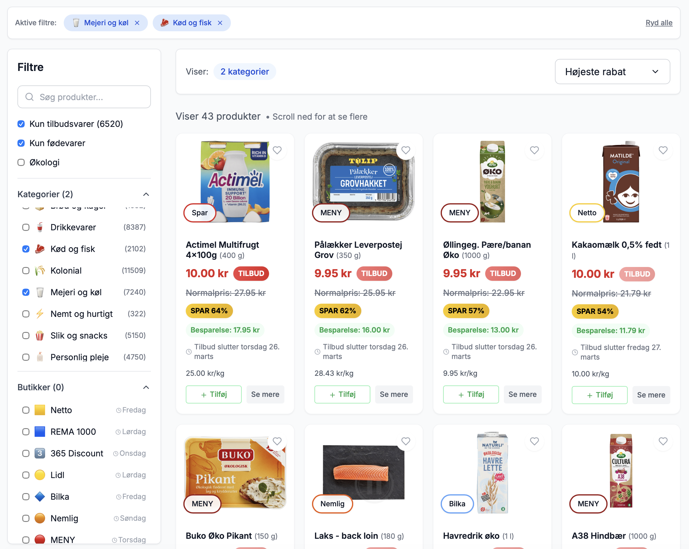 Når du har valgt favoritbutikker, er det dem, tilbuddene og planen kører ud fra – ikke et tilfældigt gennemsnit.